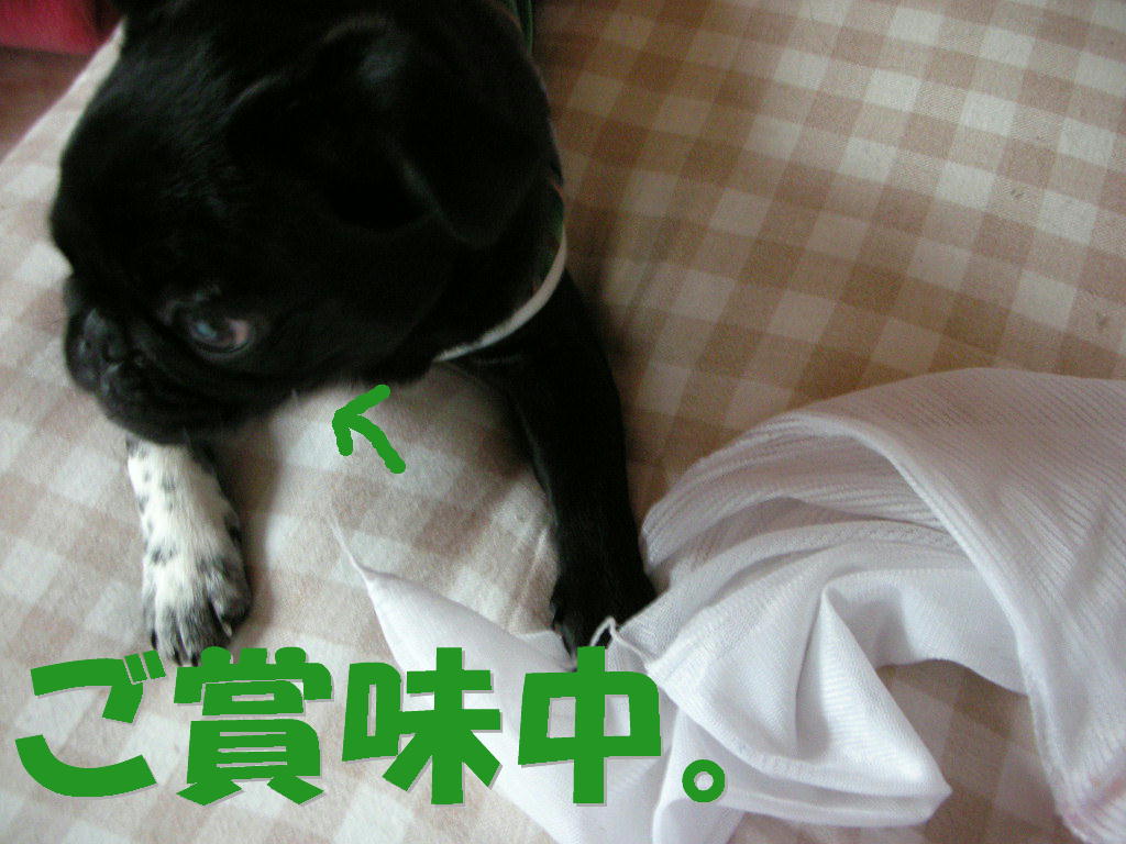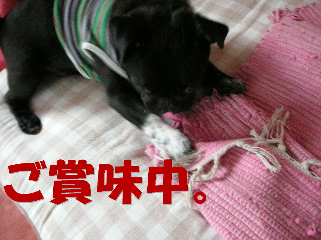 洗って干したっけ???と考えながら部屋のドアを開けると、うちの黒いひと?が何かを味わっていました。